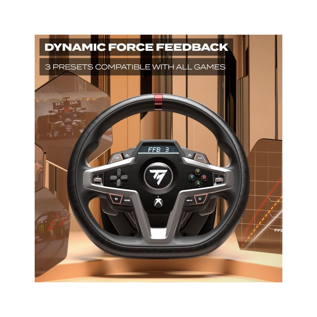 T248 poskytuje o 70 % vyšší výkon (v porovnaní s predchádzajúcimi hybridnými pretekárskymi volantmi Thrustmaster radu TMX) a pridáva špičkové nové funkcie vrátane predvolieb Force Feedback, ktoré možno meniť za chodu v hrách, magnetických radiacich pák, interaktívnej obrazovky s viac ako 20 rôznymi zobrazeniami a súpravy magnetických pedálov so 4 režimami tlaku na brzdový pedál.