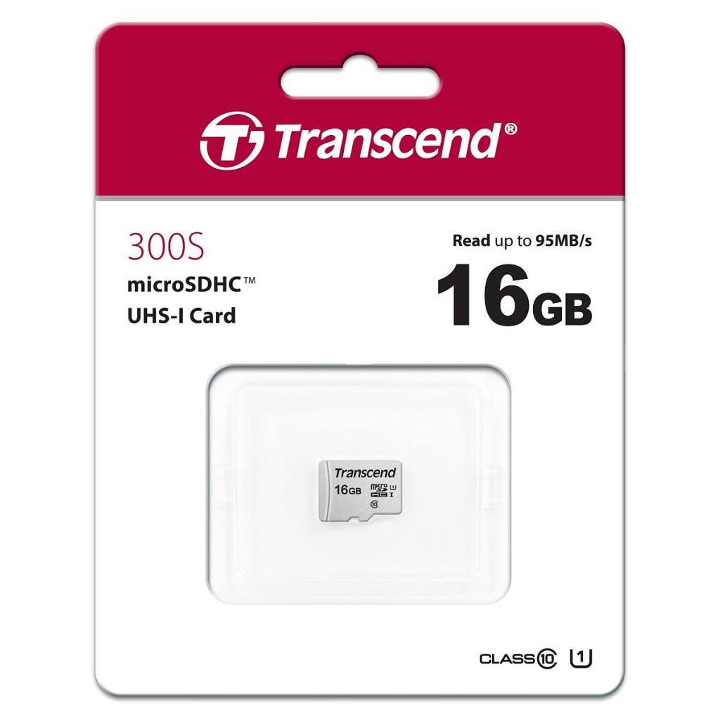 Transcend 16GB microSDHC 300S UHS-I U1 (Class 10) paměťová karta (bez adaptéru), čtení až 95MB/sDodatočné parametre