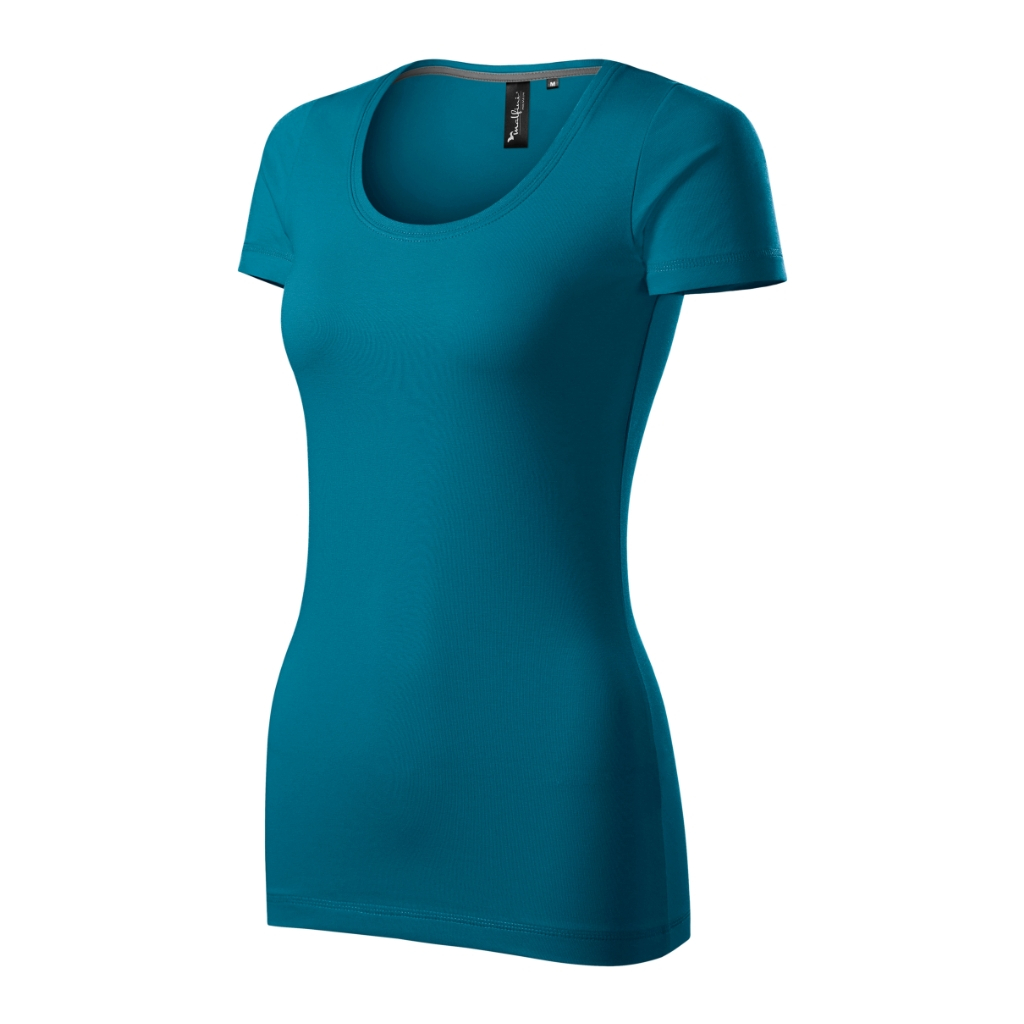 strečový materiál udržujúci stálosť tvaru, priliehavý strih s bočnými švami, hrubší guľatý výstrih, úzky lem priekrčníka z rebrového úpletu 1:1 s 5 % elastanu, vnútorná časť priekrčníka začistená kontrastnou páskou, spevnenie ramenných švov páskou, krátke priliehavé rukávy, dekoratívne prešitieDodatočné parametre