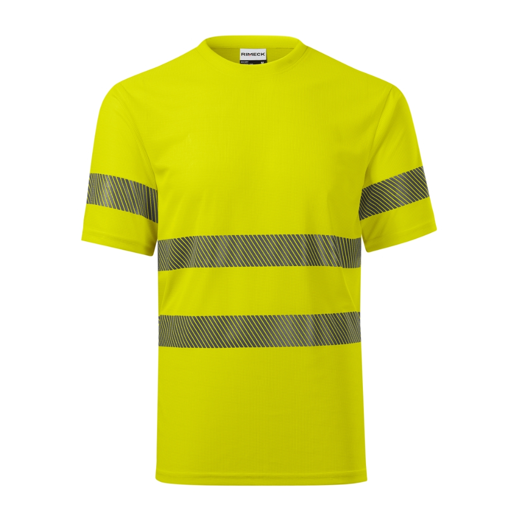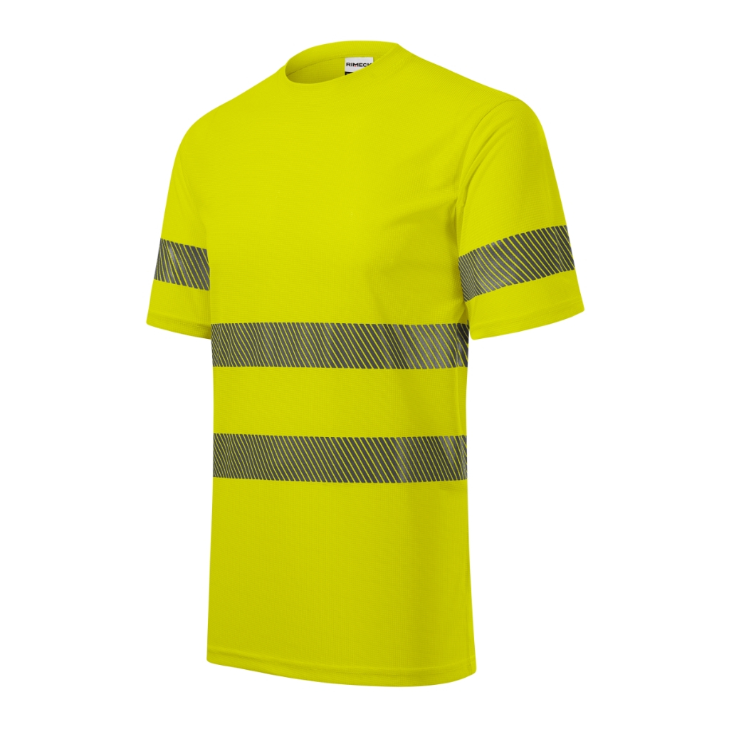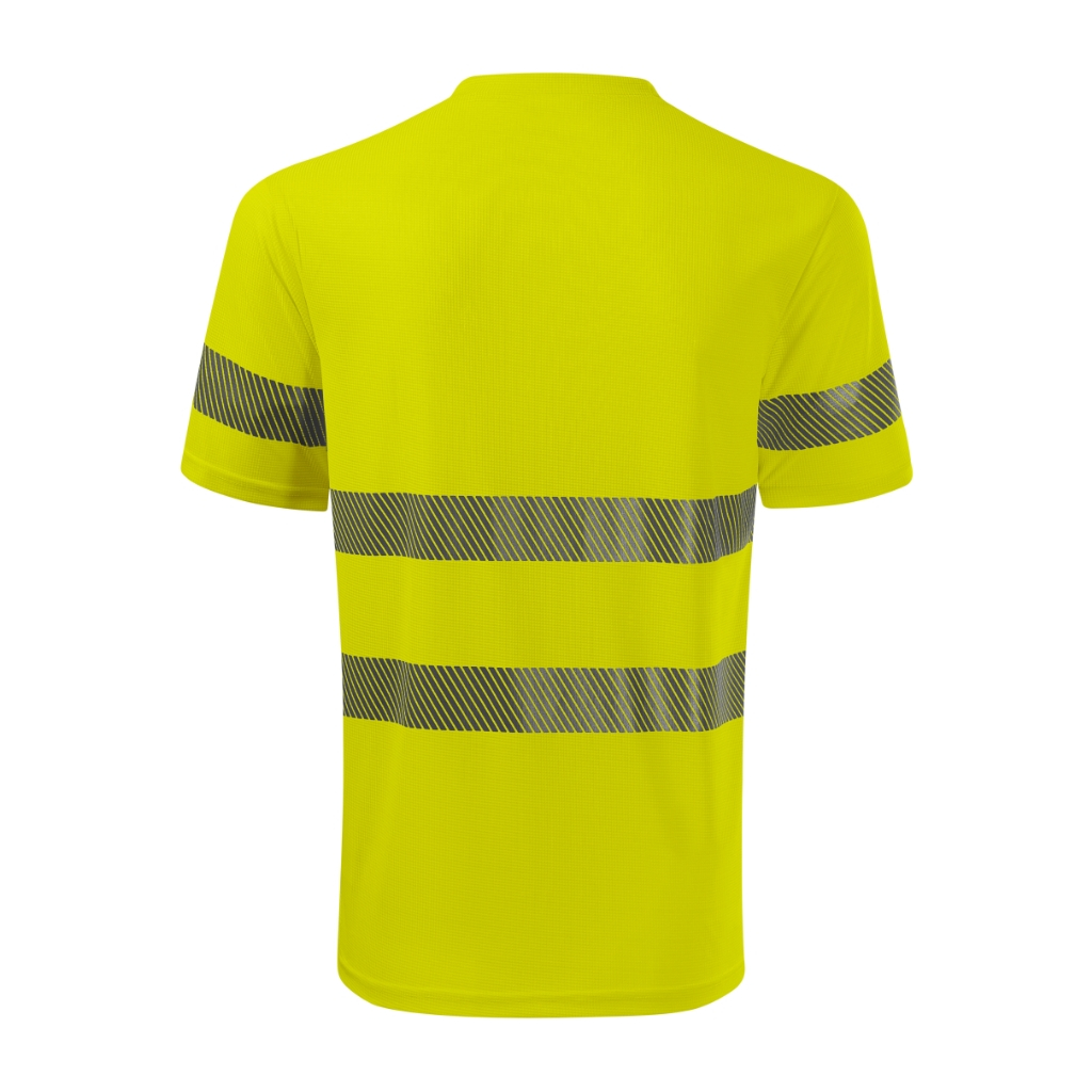 odev s vysokou viditeľnosťou, rýchloschnúci fluorescenčný materiál, segmentové retroreflexné pruhy, strih s bočnými švami, lem priekrčníka z rebrového úpletu 1:1, spevnenie ramenných švov páskou, certifikácia podľa noriem EN ISO 20471 (trieda 2) a EN ISO 13688Dodatočné parametre