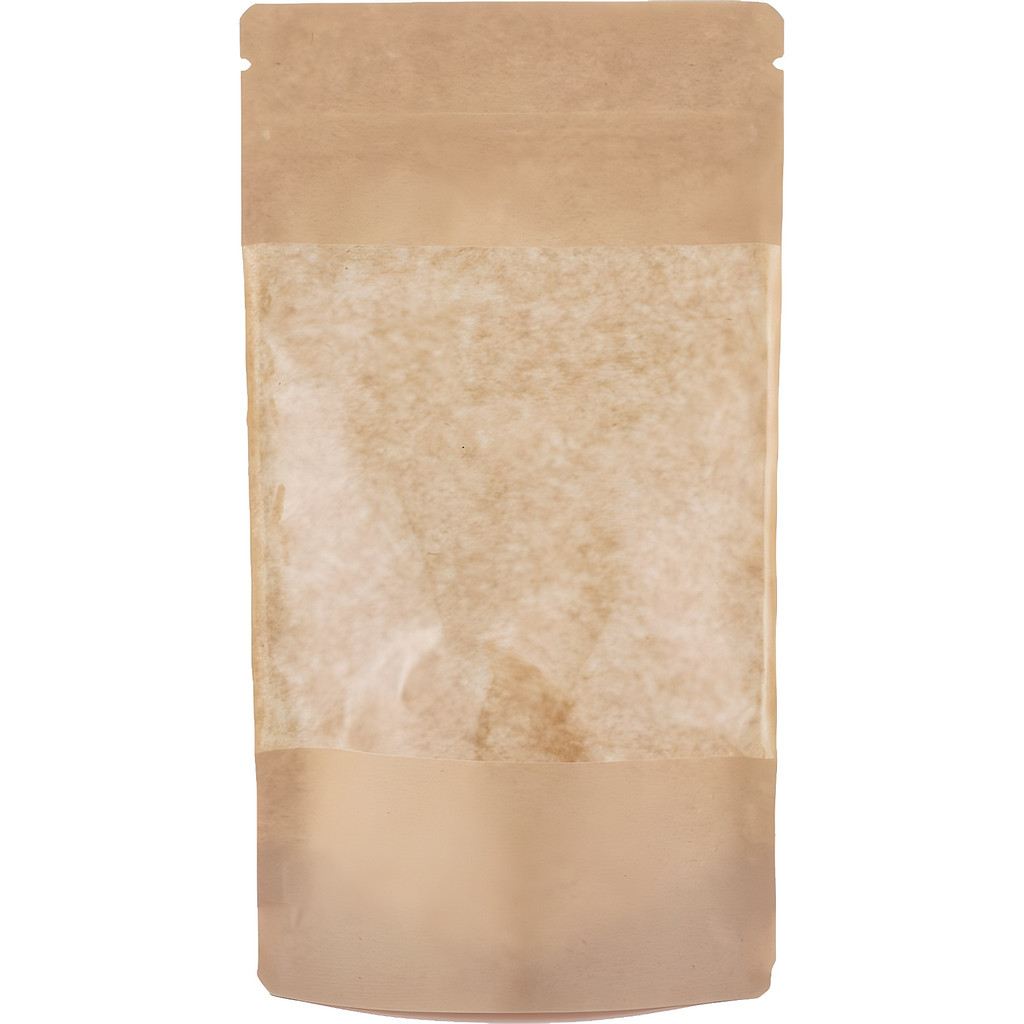 Doypacky s malým okienkom (materiál KRAFT/PET/CPP) ponúkajú strednú ochranu pred kyslíkom a vlhkosťou, pričom umožňujú zákazníkom nazrieť dovnútra.